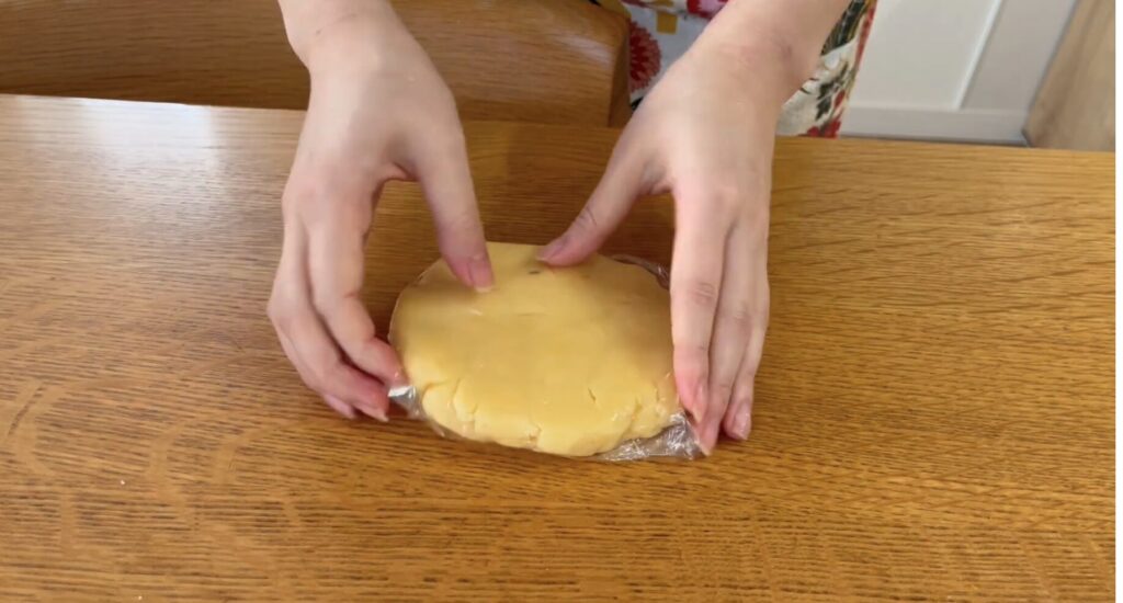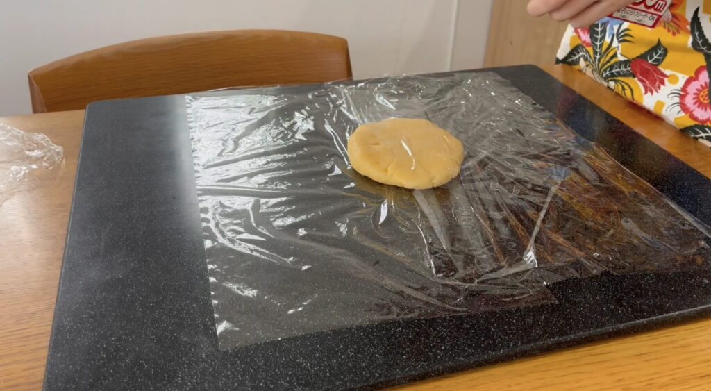 生地をラップで包んで、冷蔵庫で1時間以上冷やします